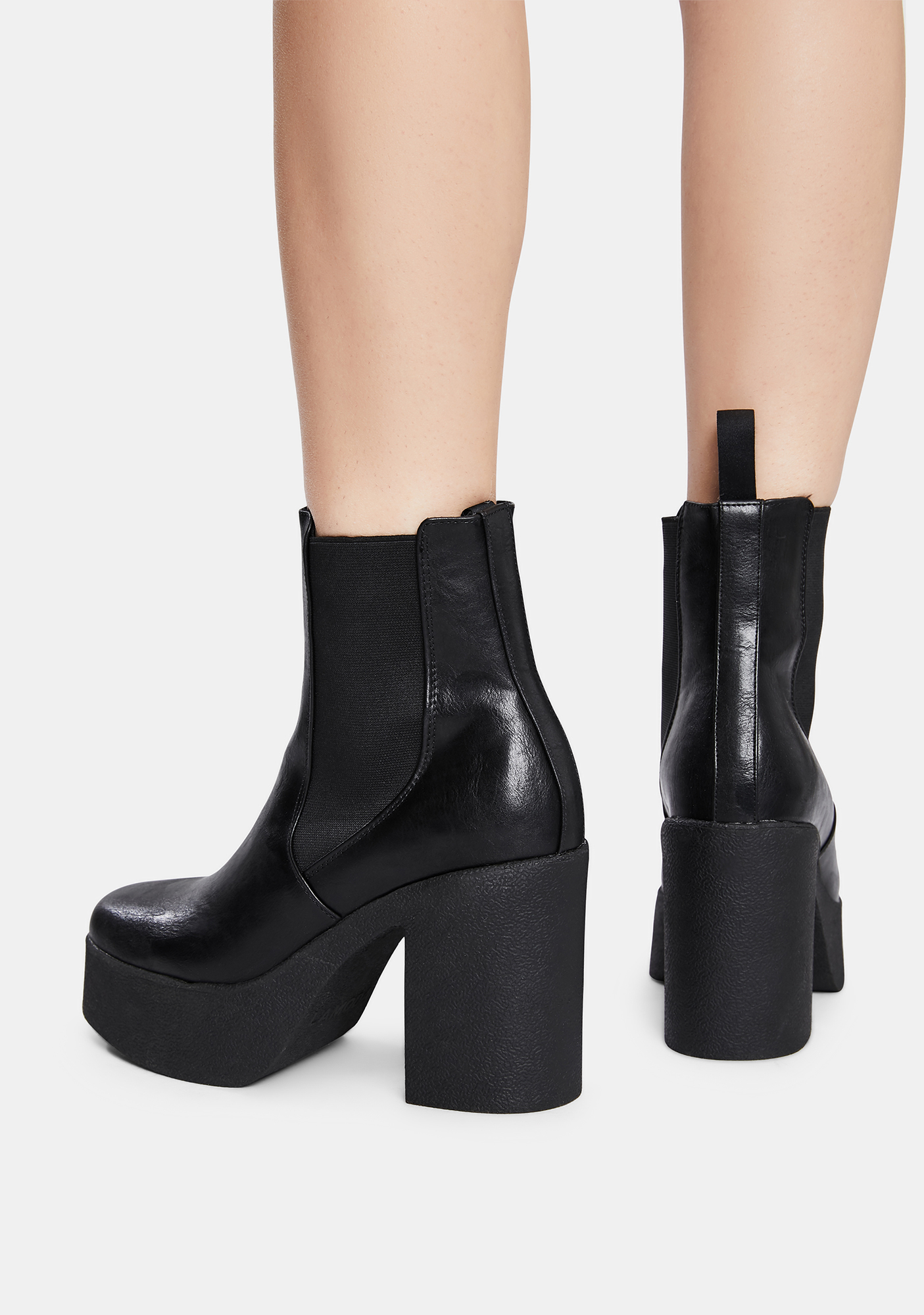 Pick N Mix Platform Ankle Boots cuz I choose u, boo! Be mine in these platform chelsea ankle boots with a chunky heel, faux leather construction, skull and crossbones printed lining, and elastic side panels.