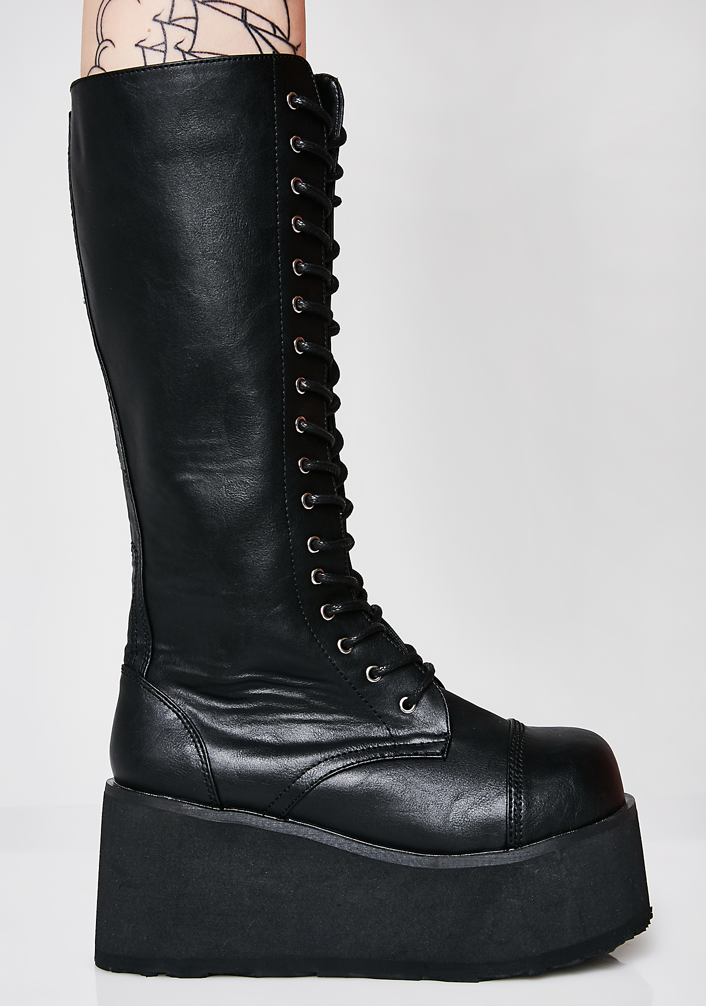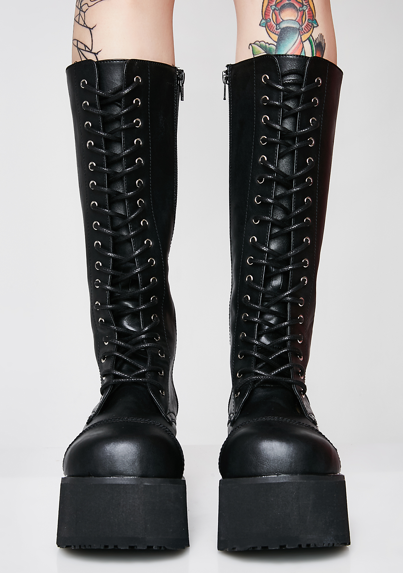 Stomp You Out Platform Boots cuz you look good not giving a fcuq. Own it with these dope lace-up platform boots that have a cushy footbed and rounded toes that’ll have ya kickin’ ass.